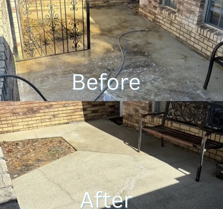 High-pressure surface cleaning removes dirt, algae, and stains from driveways, sidewalks, and patios.